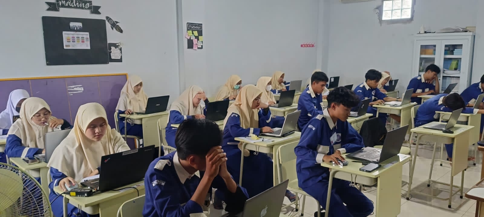 "Menurut saya PTS kali ini soalnya lebih sulit dari PTS kemarin, karena PKL jadi merasa belajarnya kurang, dengan adanya kamera di depan lebih kondusif." Faisal Nashir XI SMK